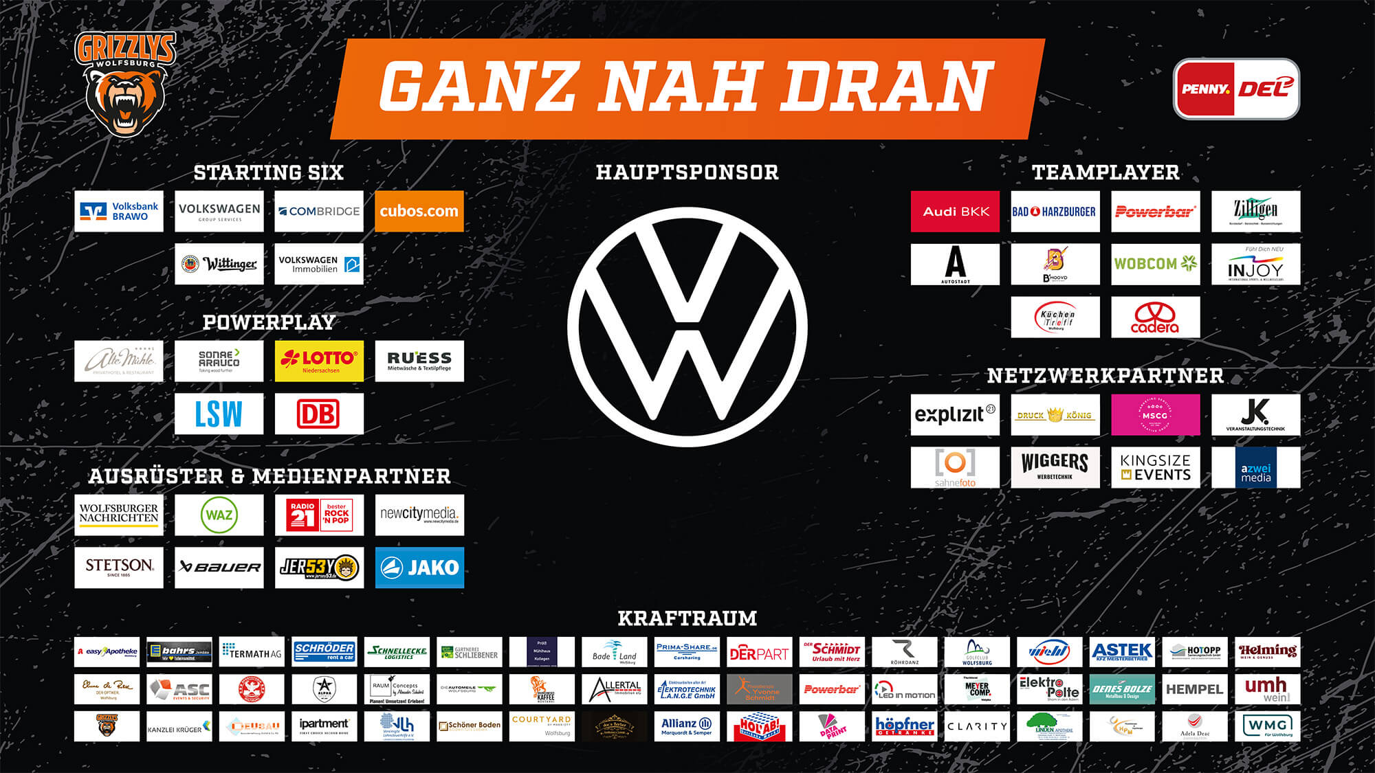 Die Partner und Sponsoren bilden eine zentrale Säule der wirtschaftlichen Nachhaltigkeit der Grizzlys Wolfsburg GmbH. Gemeinsam mit ihnen gelingt es dem Club, den Profispielbetrieb langfristig zu sichern und gleichzeitig Projekte im sozialen und ökologischen Bereich umzusetzen. Ein besonderer Schwerpunkt bei der Auswahl der Partner liegt auf der Regionalität. Der Großteil der Unternehmen stammt aus Wolfsburg und der umliegenden Region. Diese enge Vernetzung unterstreicht die Rolle der Grizzlys als wichtiger Bestandteil des regionalen Wirtschafts- und Gesellschaftslebens. Mit dieser Partnerstruktur setzen die Grizzlys Wolfsburg bewusst auf langfristige, nachhaltige und regionale Kooperationen, die nicht nur den Club, sondern auch die Partnerunternehmen und die gesamte Region stärken.